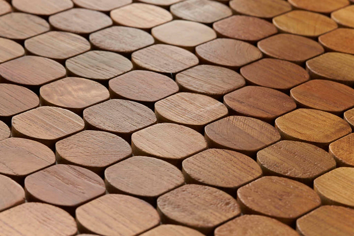 At IndoTeak Design, we believe luxury should never come at the cost of the planet. Our tile and mosaic collection is crafted from 100% reclaimed teak - sustainably sourced and thoughtfully repurposed to celebrate the beauty of what already exists. Naturally rich in oils, teak offers lasting warmth, water resistance, and a timeless organic feel that only gets better with age. Available in high-end shapes and patterns - from classic parquet to bold geometrics - each tile is a statement in responsible design and elevated style. Easy to install like any standard tile and sold by the box, it’s never been easier to bring sustainable luxury into your space.