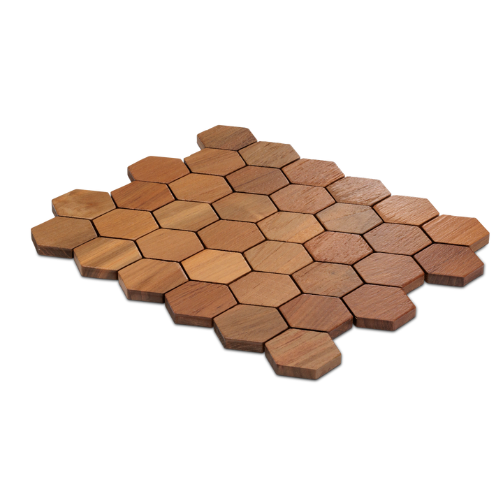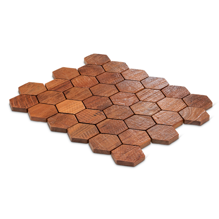 At IndoTeak Design, we believe luxury should never come at the cost of the planet. Our tile and mosaic collection is crafted from 100% reclaimed teak - sustainably sourced and thoughtfully repurposed to celebrate the beauty of what already exists. Naturally rich in oils, teak offers lasting warmth, water resistance, and a timeless organic feel that only gets better with age. Available in high-end shapes and patterns - from classic parquet to bold geometrics - each tile is a statement in responsible design and elevated style. Easy to install like any standard tile and sold by the box, it’s never been easier to bring sustainable luxury into your space.
