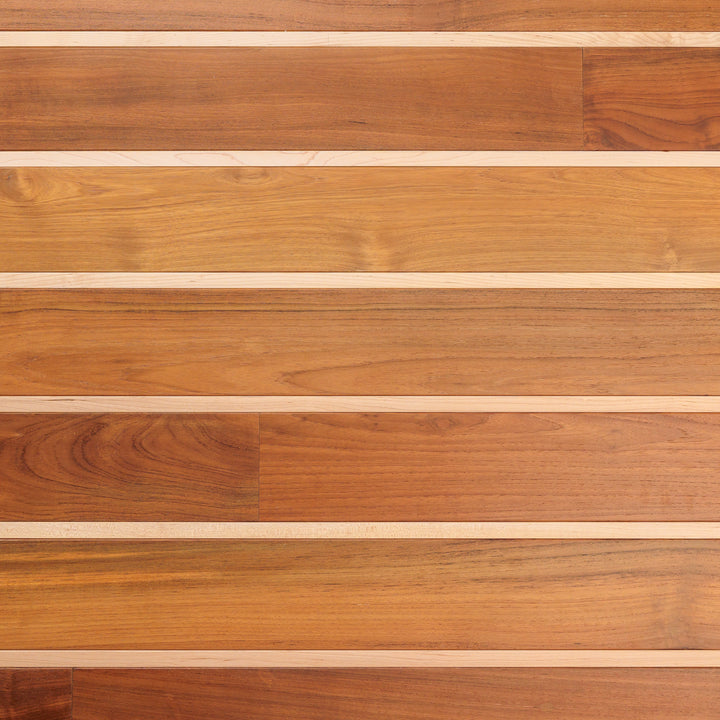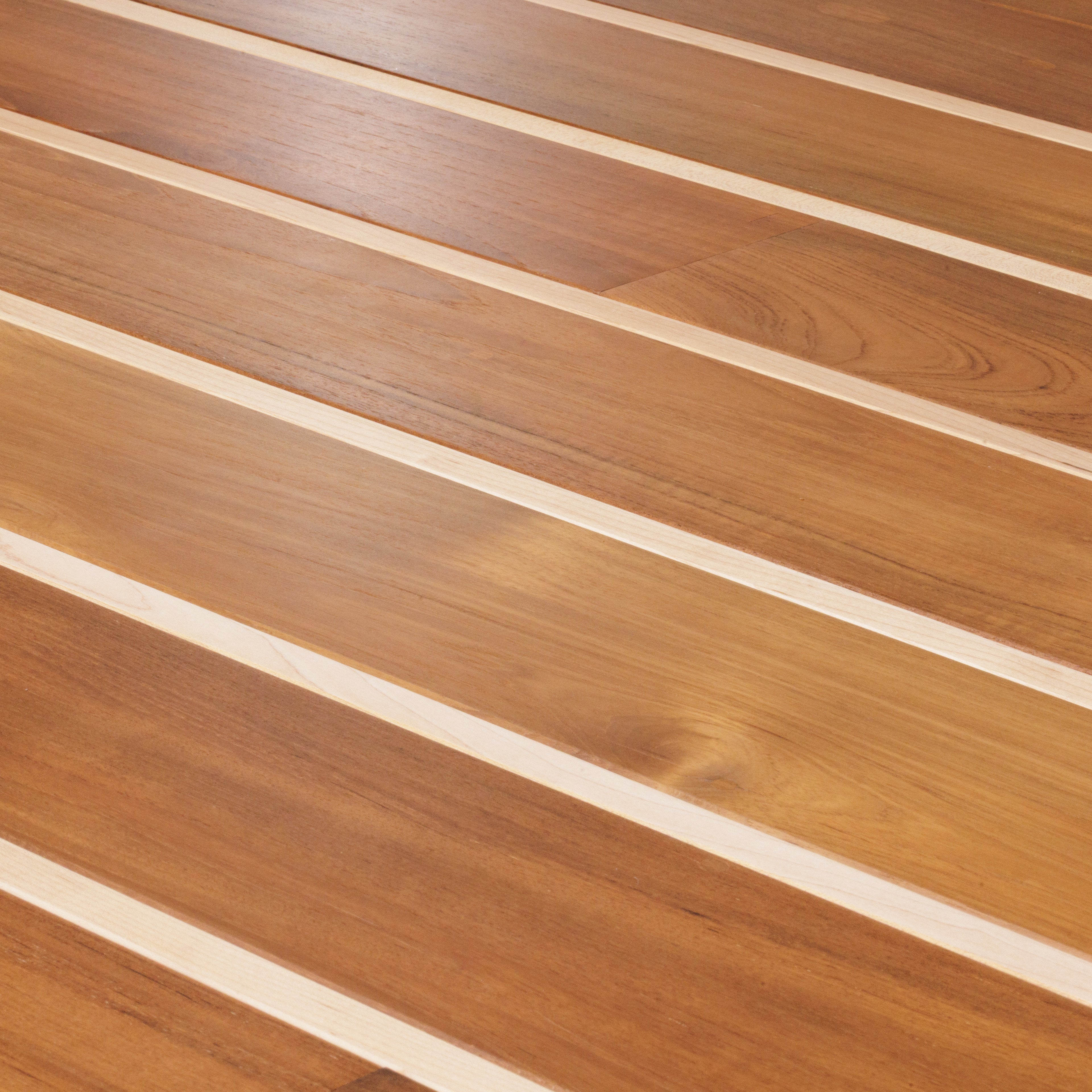 Our flooring is made with 100% genuine Teak throughout all three layers, ensuring unmatched stability and long-lasting performance. The contrasting Holly inlay is a precision-cut maple strip, designed with a tongue-and-groove system that makes installation smooth and secure. The result is the classic Teak and Holly look that’s been trusted for generations, but with the structural integrity of solid Teak at its core.