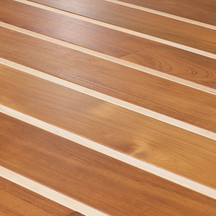 Perfect for marine flooring, yachts, sailboats, RVs, and custom interiors, our Teak and Holly planks resist wear and moisture while maintaining their natural beauty. The rich golden-brown tones of Teak paired with the clean, crisp Holly lines create a timeless design that elevates any space.
